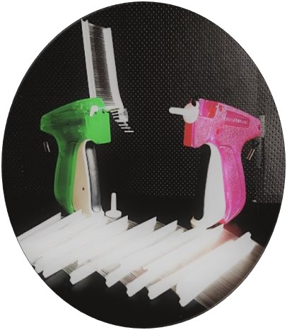 Su función es insertar el sujetador, por medio de una aguja especial; atravesando el artículo que se desee etiquetar. Así como, en los sujetadores, las hay en diferentes versiones y aplicaciones, adaptándose al artículo final.